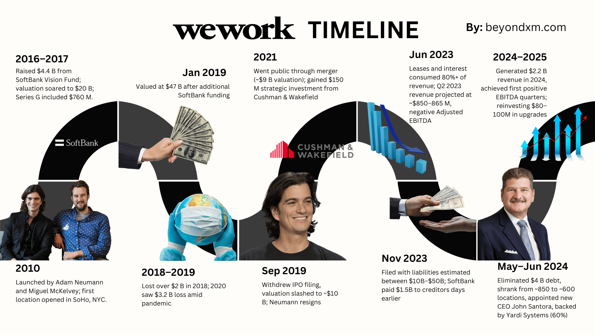 In January 2019, WeWork reached its apex: a $47 billion valuation following SoftBank's final investment, despite losing $1.9 billion on $1.8 billion in revenue the previous year.